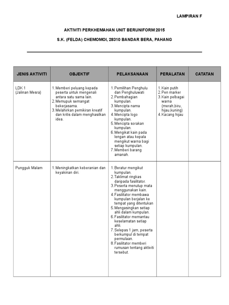 Cadangan Aktiviti Perkhemahan Unit Beruniform 2016 Pdf